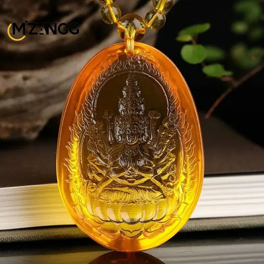 Golden Amber Eight Guardian Gods Thousands of Hands Avalokitesvara Bodhisattva Zodiac Rat Native Life Buddha Pendant Necklace