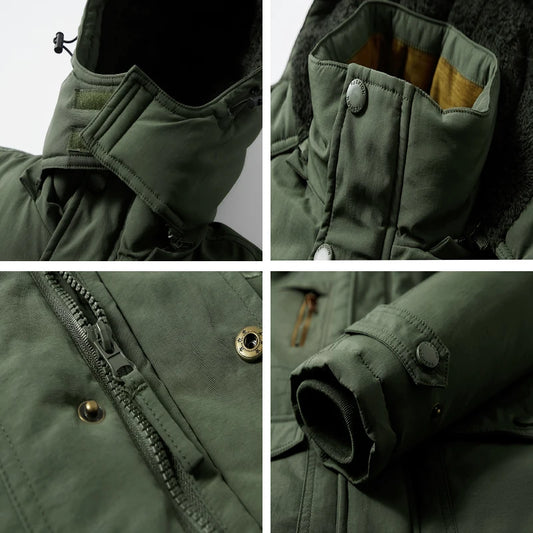 Winter Parkas Windproof Fashion Mens Military Parkas Casual Fleece Warm Removable Hat Men Aviator Windbreaker Cotton Jacket Male
