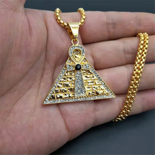 Collier Pendentif Pyramide Egyptienne Croix Ankh